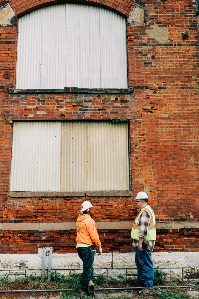 Ensuring that a replacement mortar will be sympathetic to historic masonry is key to a successful repointing project. Our goal is to make sure that the new mortar is a sacrificial element, meaning that it, NOT the masonry units, will slowly deteriorate and can be periodically replaced. This deterioration occurs because the mortar rather than the masonry is handling the stress of building movement and moisture. Mortar should be breathable enough to transfer moisture out of the wall system and flexible enough to absorb the pressure of freeze-thaw cycles and building movement. The selected mortar should be more vapor permeable and “softer” than the original mortar and the masonry units.